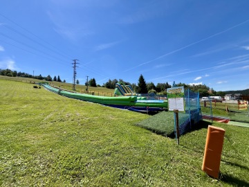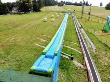 Téměř 100m dlouhý rovný vodní sjezd, který láka k jízdě ve všech představitelných polohách. Největší borci jezdí ve stoje :-)