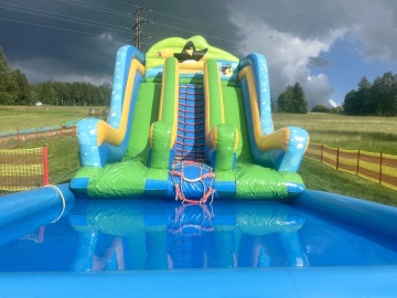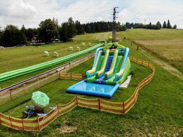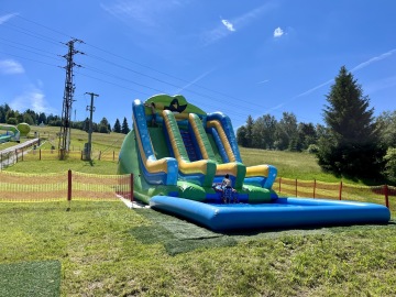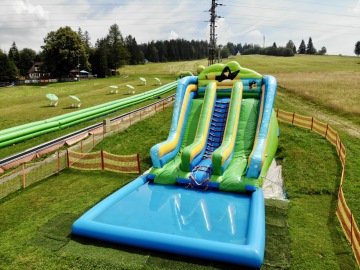 Až 6m vysoký vodní hrad se 2 skluzavkami a dopadovým bazénem je to pravé letní osvěžení. Vstup není omezen věkem, ale děti do 5 let se většinou bojí výšky a rychlosti.